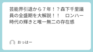 芸能界引退から7年!?森下千里議員の全盛期を大解説!! ロンハー時代の輝きと唯一無二の存在感