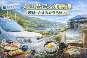 今回の旅は、メシドラ 兼近&真之介のグルメドライブの企画として、茨城県かすみがうら市が舞台。