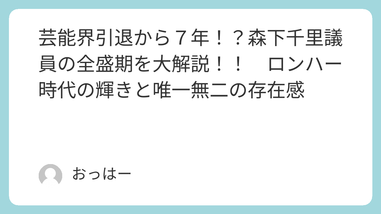 この記事では、森下千里さんの全盛期を振り返り、その魅力を改めてまとめます。