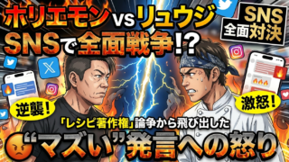 堀江貴文が料理研究家リュウジを「小物すぎん?」と一喝!クックパッドのレシピ保存機能を巡る論争から、ホリエモン経営の店への「マズい」発言に対する怒りまで。AI時代のレシピ著作権問題と、SNS強者同士のバトルの行方を徹底解説。
