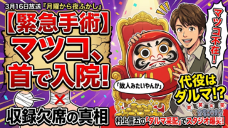 『月曜から夜ふかし』でマツコ・デラックスが首の手術のため欠席。一人で登場した村上信五が用意した驚きの“代役”とは?「故人みたい」と自虐しつつもスタジオを爆笑に包んだ、村上流の優しさと番組の近況を徹底レポートします。