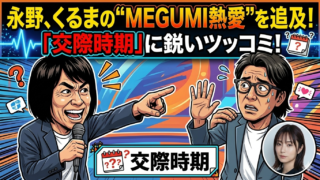 エンタメニュース 【爆笑】永野、令和ロマン・くるまの熱愛を追及 MEGUMIとの“交際時期”に鋭いツッコミ 永野が番組で令和ロマン・髙比良くるまとMEGUMIの熱愛を追及。交際時期についてのツッコミでスタジオは大笑いとなりました。 2026.03.12 エンタメニューステレビ番組