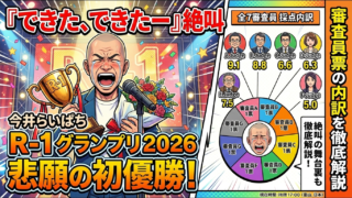 【R-1 2026】今井らいぱちが悲願の初優勝!「できた、できたー!」絶叫の舞台裏と審査員票の内訳を徹底解説
